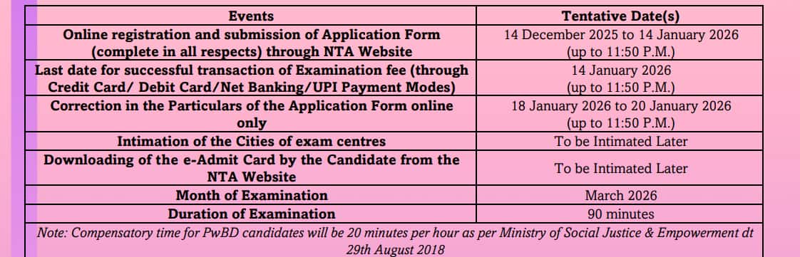जी कार्यक्रमों के लिए सीयूईटी 2026 परीक्षा तिथि | मार्च 2026 |